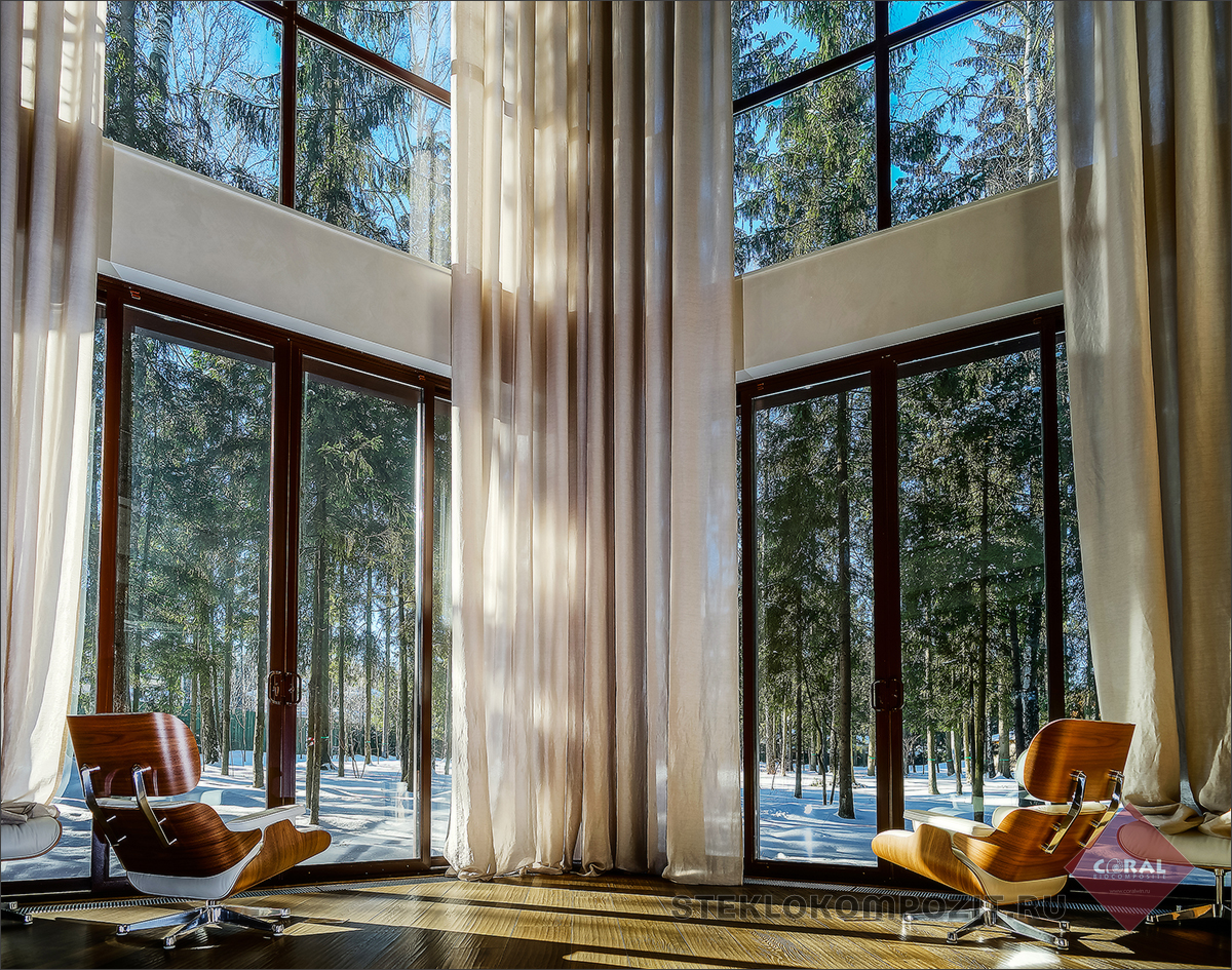 Раздвижные двери из стеклокомпозита могут быть окрашены в один из 4000 цветов шкалы RAL или покрыты натуральным шпоном дерева ( 200 видов шпона).